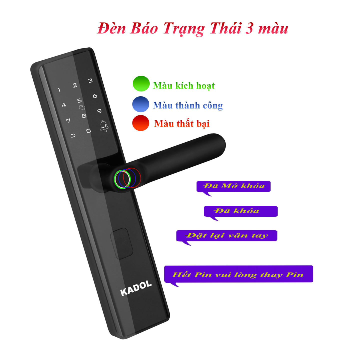 - Vân tay FPC nhận dạng 360 độ với 3 trạng thái màu sắc giúp người dùng có thể dễ dàng, nhanh chóng nhận biết việc thao tác của mình là đúng hay sai