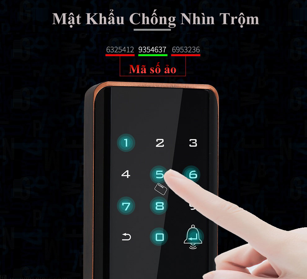- Mật mã chông nhìn chộm, chống sao chép: Phía trước và phía sau mật mã mở khóa bạn có thể tùy úy thêm các con số ngẫu nhiên để đánh lừa mắt nhìn người ngoài, cũng như sáo trộn vị trí các con số
