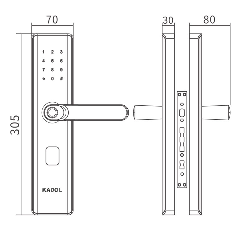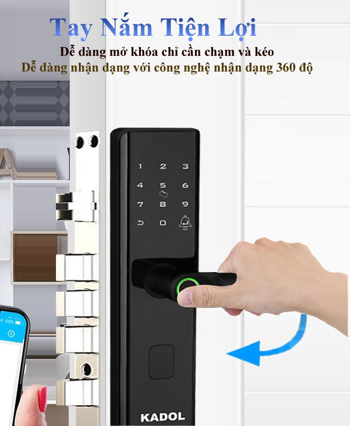 Khóa cửa vân tay kadol S7 thiết kế sang trọng: thân đúc nguyên khối, Bề mặt IMD siêu bền. Ngoài ra kadol S7 có phiên bản cho phép mở khóa từ xa qua điện thoại với app Tuya